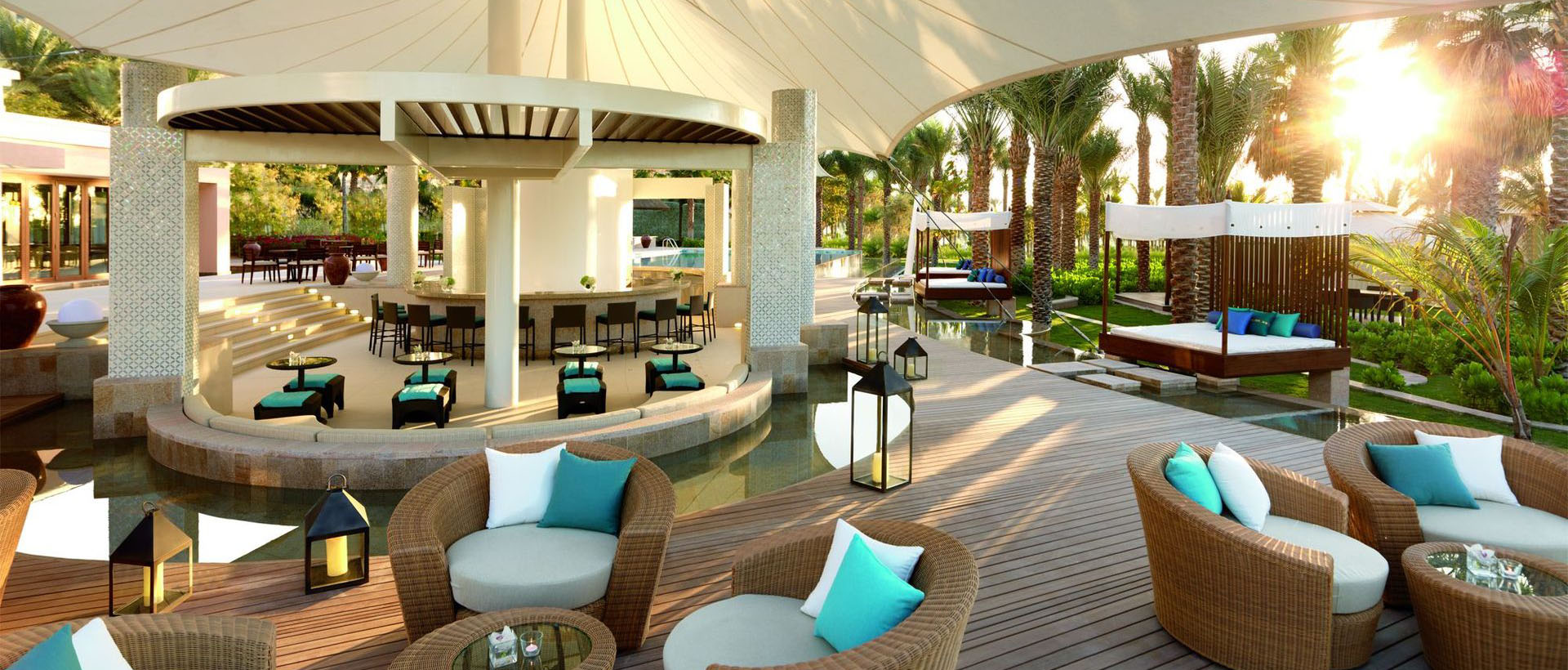 Caravan – ресторан международной, средиземноморской, арабской и индийской кухни. Шведский стол. Есть открытая терраса. Вид на Персидский залив и сады.