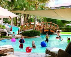 На первом этаже есть номера с прямым выходом к бассейну, их бронируют в основном семьи с детьми. Для ребятишек есть небольшая водная горка, для взрослых – водопад, на фоне которого туристы делают красивые фотоснимки. У бассейна детей угощают мороженым и соком.