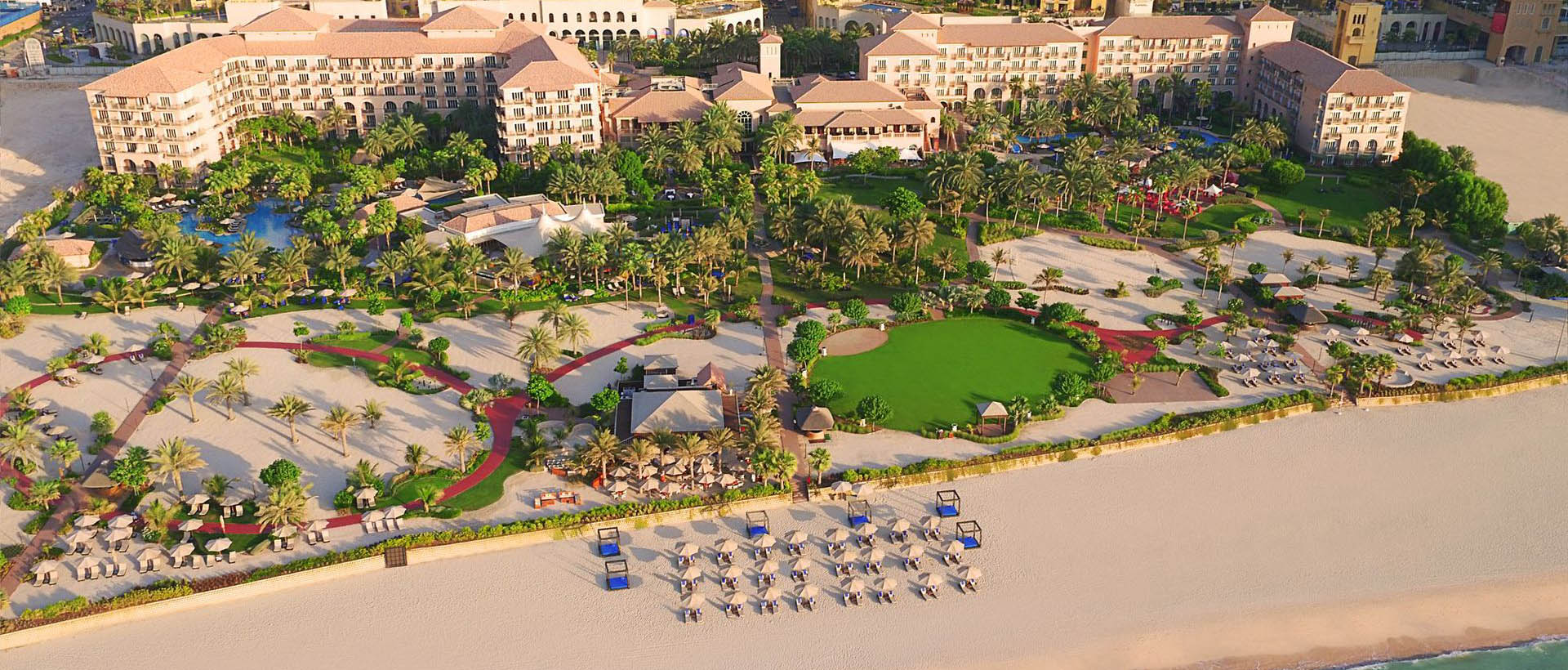 У просторного белоснежного пляжа, омываемого лазурными водами Персидского залива, среди пышного тропического парка и сверкающих бассейнов, расположились элегантные здания The Ritz-Carlton Dubai Jumeirah 5*, выполненные в средиземноморском стиле.